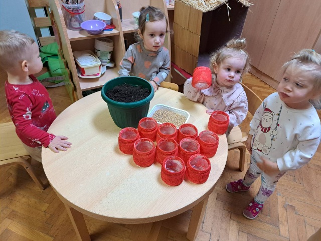 Aktivnosti smo nastavili izrađujući božićne ukrase, raznolike i maštovite kuglice. Izradili smo i prigodne čestitke kojima su djeca razveselila svoje bližnje. Za blagdan sv. Lucije posijali smo pšenicu u posudice te se svakodnevno brinuli o njoj.